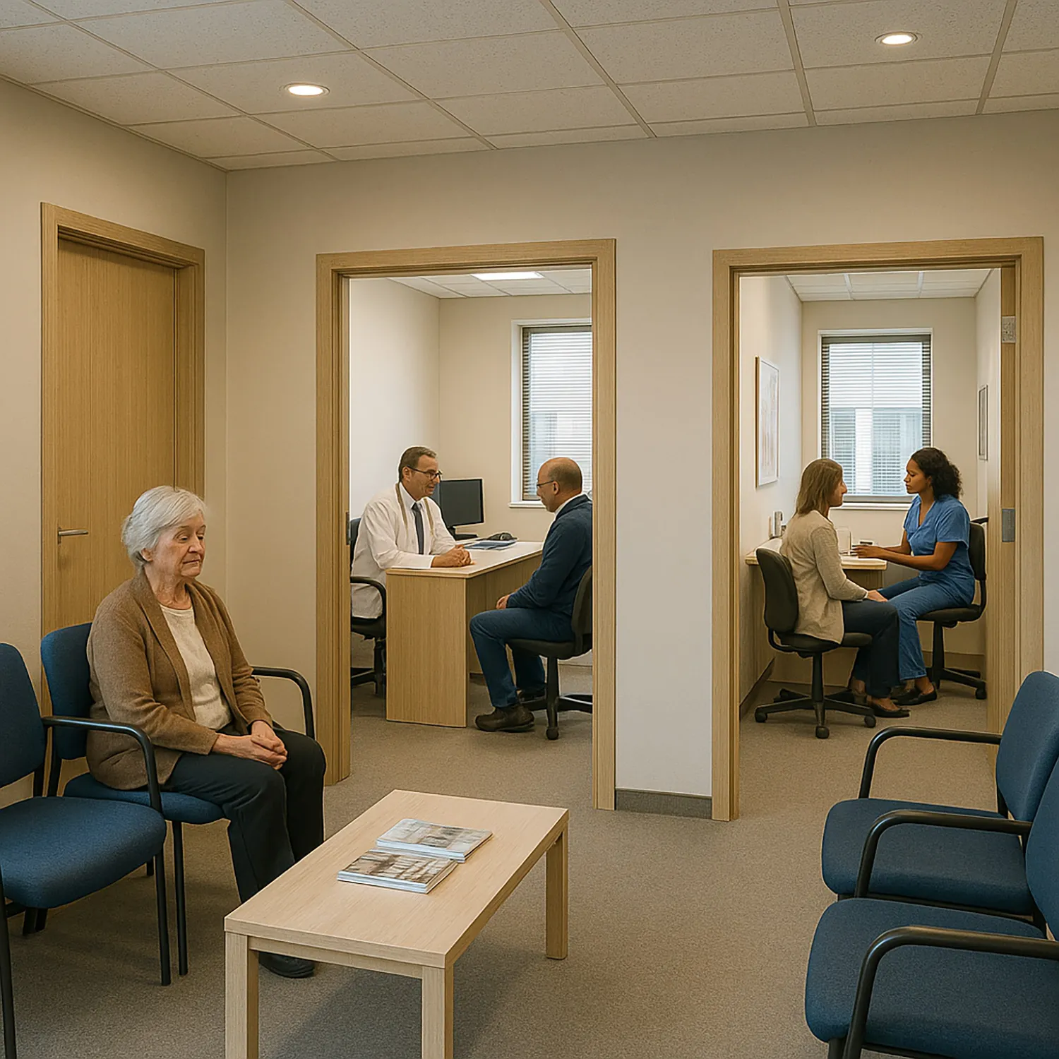 Compuesto de sala de espera, consulta médica y consulta de enfermería.